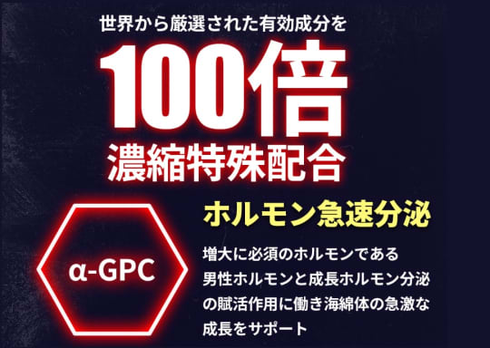 α-GPCは母乳にも含まれ成長や身体の形成にも大きく関わると言われている物質なだけに増大効果も期待できそうですね。