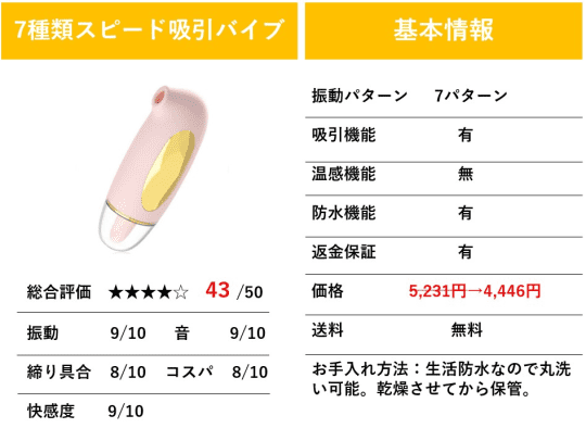 ここでは気になる”7種類スピード吸引バイブ”の口コミをご紹介します。