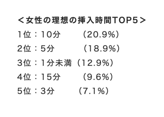ここで、女性が感じる理想の挿入時間を見ていきましょう。