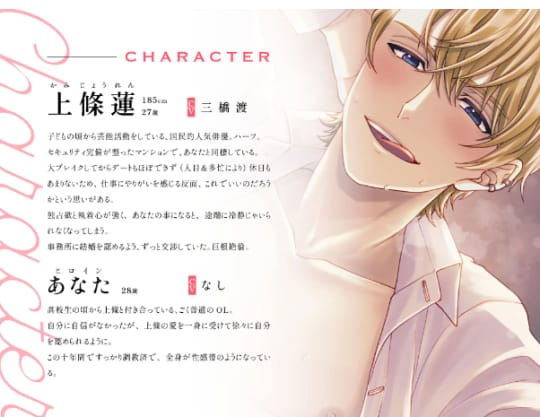TLボイスドラマの中では割と少数派の、男性受け描写が含まれている作品です。