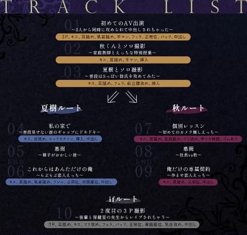 トラック自体は4つですが、そのどれもが25分以上かつ濃厚なエロが詰まってます。よくこんなにシチュ被らないで詰め込めたな?って称賛の言葉しか出てきません。