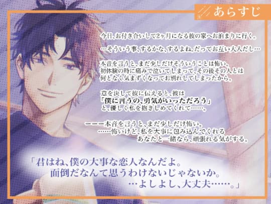 処女喪失の時に辛い経験をしているあなたは正直セックスに抵抗がありましたが、彼の包み込むような優しさに次第と心が解れていきます…。