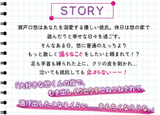 無理やり要素も含まれているものの、なにせ彼氏はアナタを溺愛しているため愛情のある愛撫で激攻めしてくれますよ♡