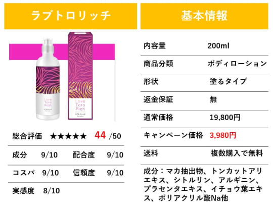 次に気になる”ラブトロリッチ”の成分について見ていきましょう。
