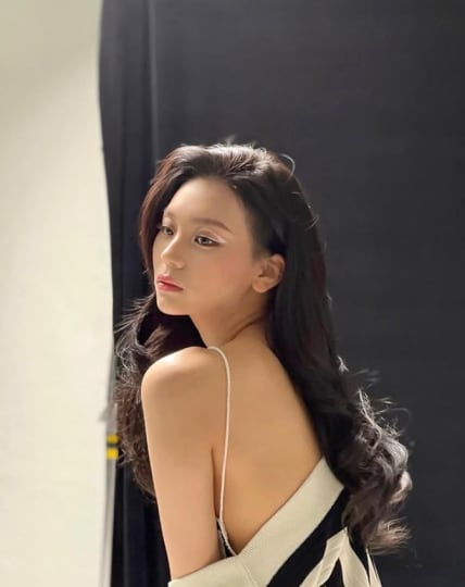 露出は少なめのイェリンですが、大胆なワンピースを着ています。