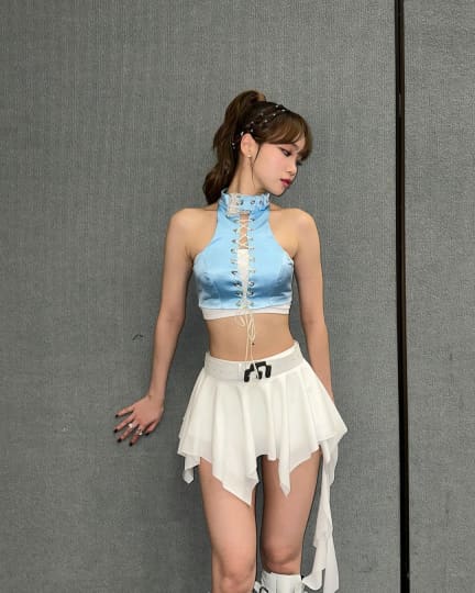 チェウォンの衣装は露出率が高いです。細いウエストもエッチ。