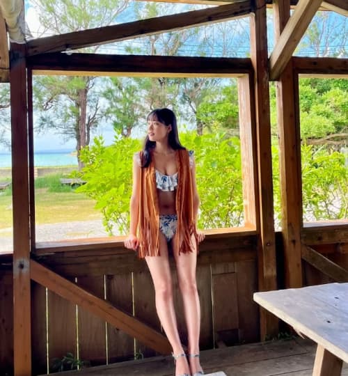 まだ17歳なので子供っぽさがすごくありますが、めちゃくちゃかわいいし露出度高めの服をよく着ています。