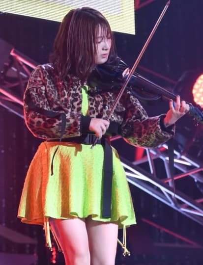 白い生足がセクシーです。ヴァイオリンより足に目がいっちゃいますね。