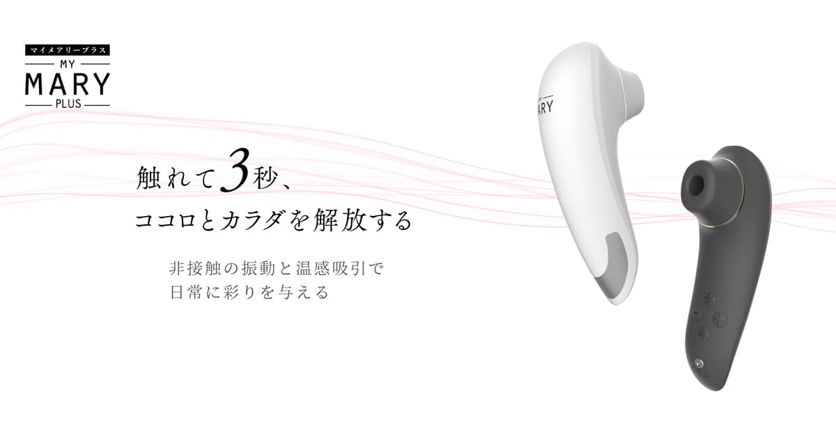 ”MY MARY(マイメアリープラス)”は温感機能付きでまるで本当に舐められている感覚を楽しめる最新の大人グッズ。スタイリッシュなデザインで、まるで美顔器に見えるため女性が持っていても違和感がありません。吸引・振動パターンも豊富で、オーガズムを感じやすい設計がされています。
